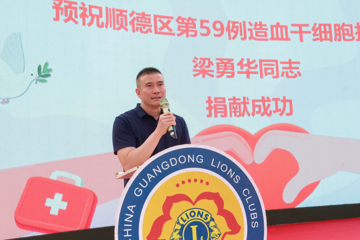 活动中,顺德区第19例造血干细胞捐献者曾凯殷、顺德区第53例成功捐献造血干细胞的潘镇东先生为大家分享了自己的献髓经历,并为马上出发广州准备捐献造血干细胞的梁勇华先生加油打气。他们用朴实的话语、真挚的感情打动了在场的每一位听众,让大家看到俗称的“骨髓”捐献并非想象中的钻骨取髓,而是从外周血中采集,是安全的。勇敢的一次托举,可以挽救一个家庭,同时也使社会更加和谐美好。
