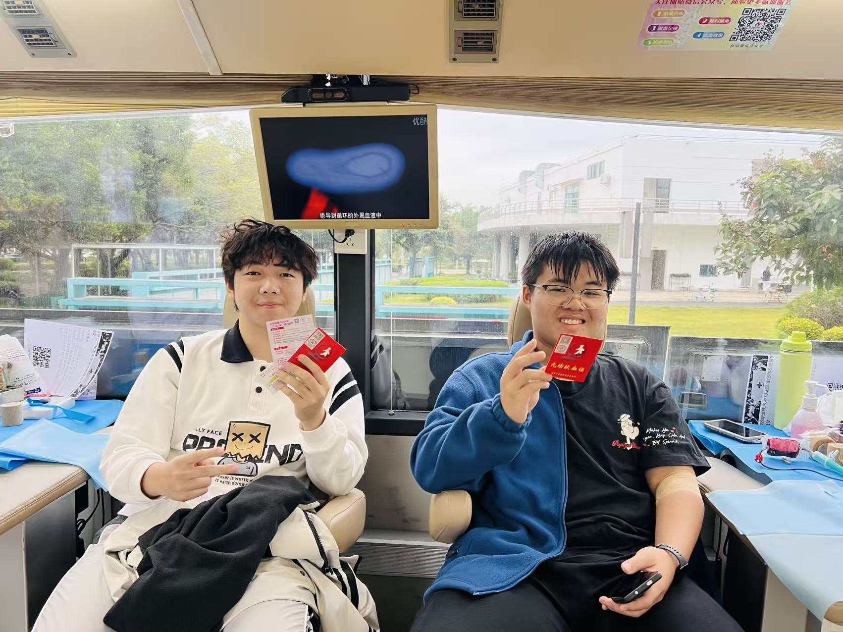 来自顺德职业技术大学的张梓斌和李楚铭同学,相约一同前来献血。面对网络上关于献血的种种不实传言,他们坦然以对:“我们只想尽自己所能,为社会献出一份善意。用可再生的血液,挽救不可重来的生命。”