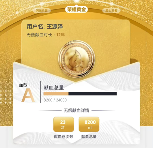 在杨凌示范区医院献血点,王源泽第24次参加无偿献血,A型血的他献血总量达到8400毫升。