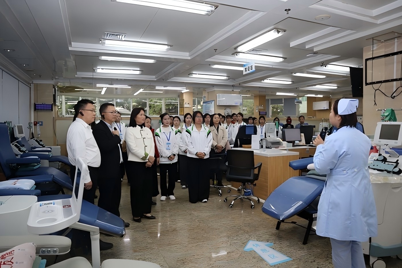 座谈会前,南宁市卫生学校师生代表们先后参观了血站“邕有热血·拥有爱”集智慧党建、血站发展、献血文化、廉政教育于一体的文化阵地。通过图文展示、历史影像,实物陈列等形式,生动呈现了血站的党建学习教育、发展成就与品牌建设成效,让师生们直观感受党建引领下的行业文化魅力。随后,师生们沉浸式体验了“血液的奥秘”智慧科普馆,通过互动演示、多媒体展示等现代化手段,系统学习血液生理知识、无偿献血科普要点,直观了解采供血全流程的可视化实践;最后,师生参观了采供血全流程,实地探访血液采集、制备、储存、供应等关键环节,详细知晓各环节的规范化管理流程、严格的质量控制标准及全方位的安全保障措施,对采供血工作的专业性、严谨性与公益性形成了更为深刻、全面的认知,进一步提升了师生理解和支持无偿献血的热情。