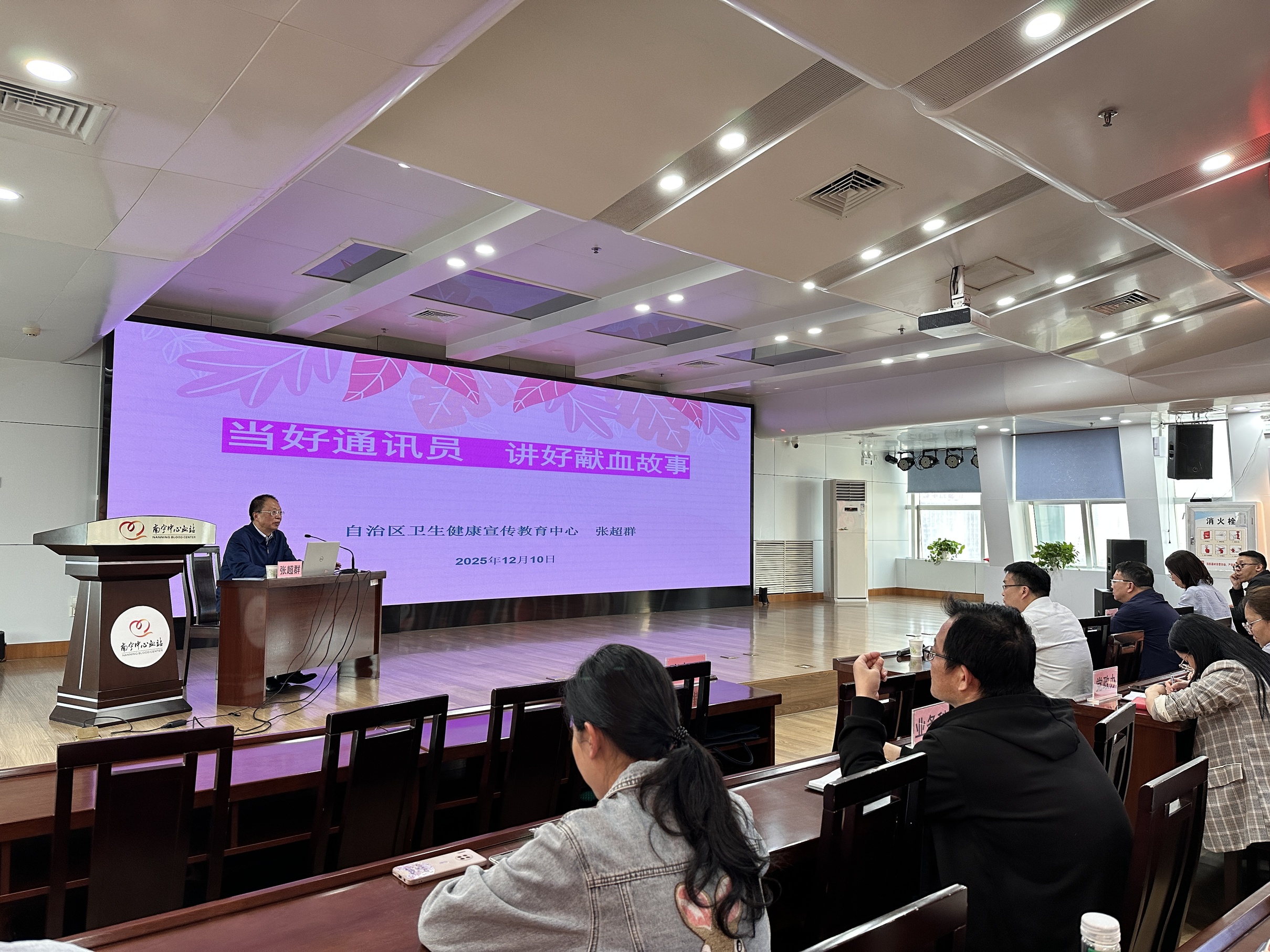 为进一步提升无偿献血宣传工作的专业性与影响力,掌握新媒体环境下信息传播的有效方法,12月10日下午,南宁中心血站特邀自治区卫生健康宣传教育中心副主任张超群开展题为“当好通讯员 讲好献血故事”专题培训。