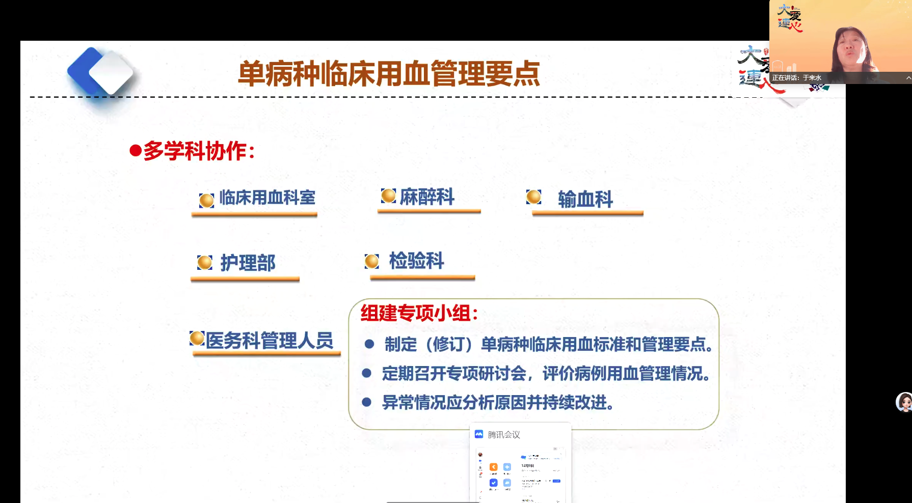 大连市临床用血质量控制中心副主任毕晓琳围绕 “单病种临床用血管理评价考核要点” 进行专题授课。核心在于确保用血安全、合理且高效。
