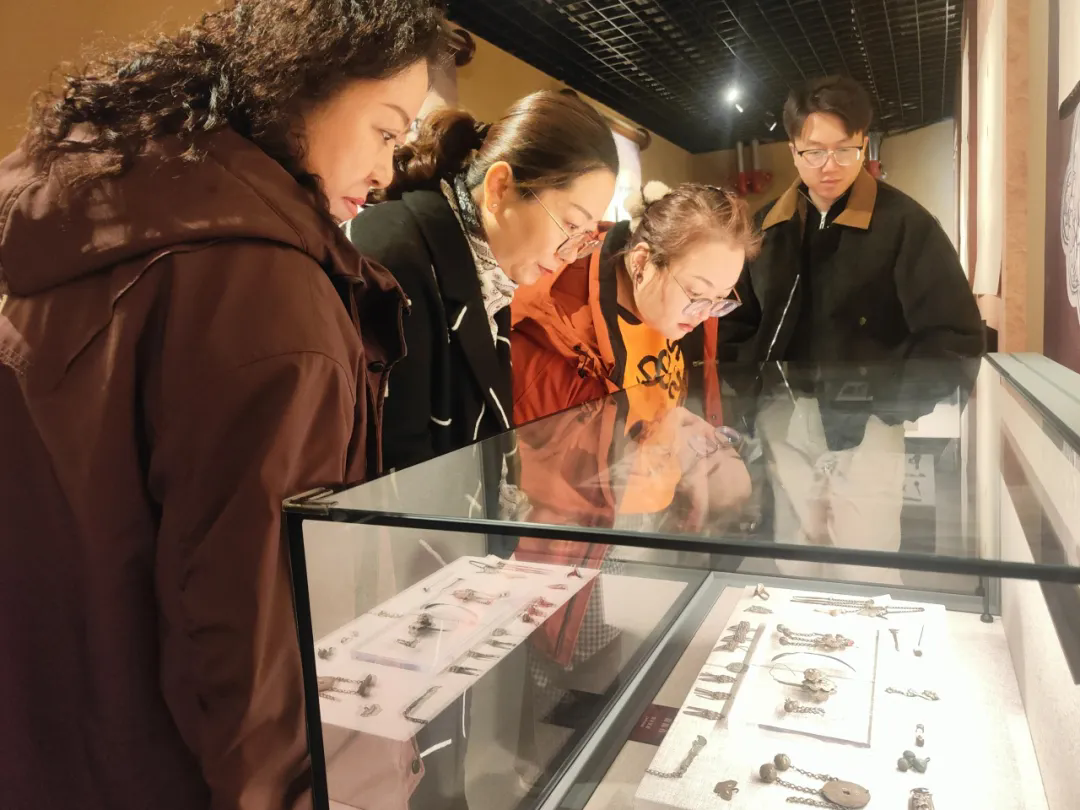 活动第一站,大家走进吉木萨尔县博物馆,跟随讲解员的脚步,参观了唐宋时期汉、回鹘、契丹等民族的生活遗迹、各类器物、历史图片及多媒体展示,直观感受了当地多民族聚居、多元文化并存的历史图景,深刻体会了在中华民族多元一体的发展格局中,各民族和谐共处、文化互鉴的繁荣景象,进一步明晰了各民族交往交流交融的历史脉络。党员马志伟感慨道:“这些文物是中华民族多元一体格局的活化石,让我们真切感受到各民族你中有我、我中有你的历史渊源。”