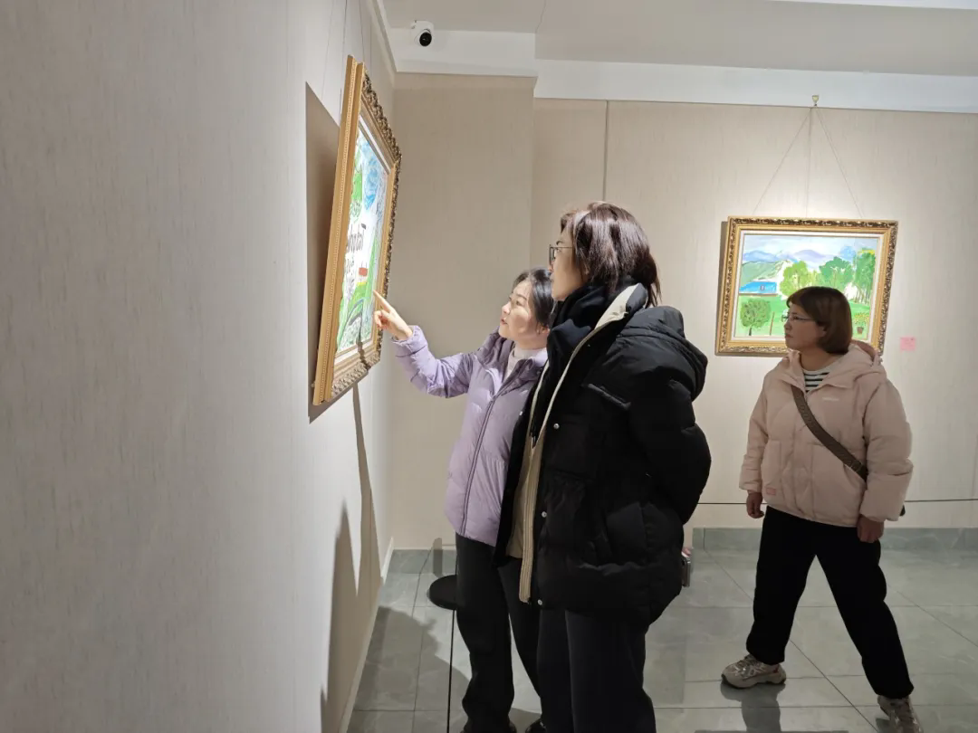 第三站来到了小分子村美术馆,在福建厦门援疆力量的支持下,这里已成为几十名疆内外著名艺术家的创作基地。大家有序观摩驻村艺术家以天山风光、北庭文化、乡村生活为题材创作的《丝路人家》等精品画作,从艺术创作中感受各民族交往交流交融的深厚底蕴。