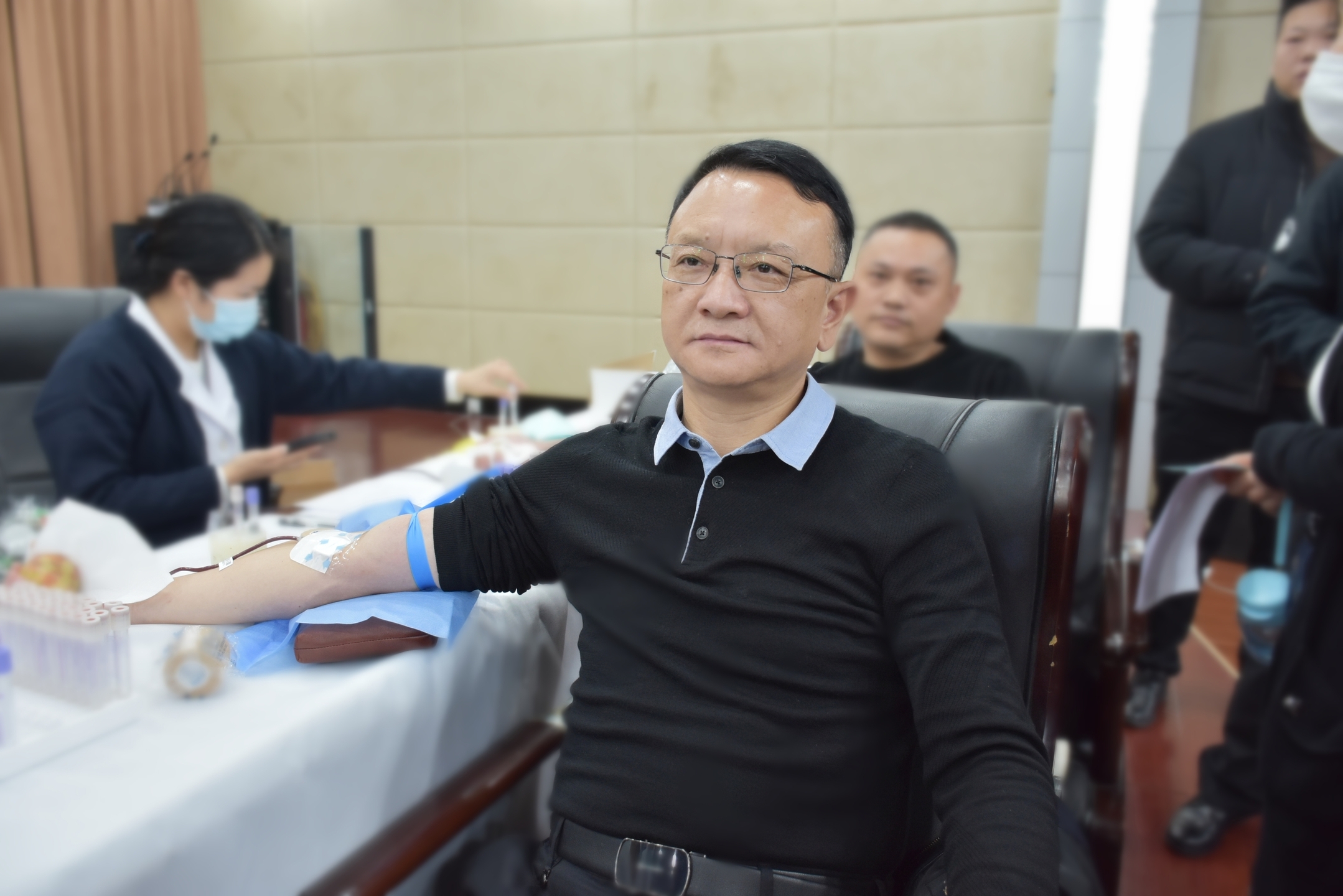 进贤县人大常委会党组副书记、副主任熊志清带头献血,为干部职工树立了榜样。