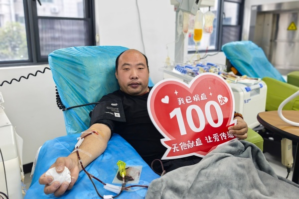 12月8日,在株洲市中心血站的机采室里,漆志意安静地坐在采血椅上,针管连接着他的手臂与采血机,深红色的血液在透明的管道中缓缓流动,这是他第一百次献血。