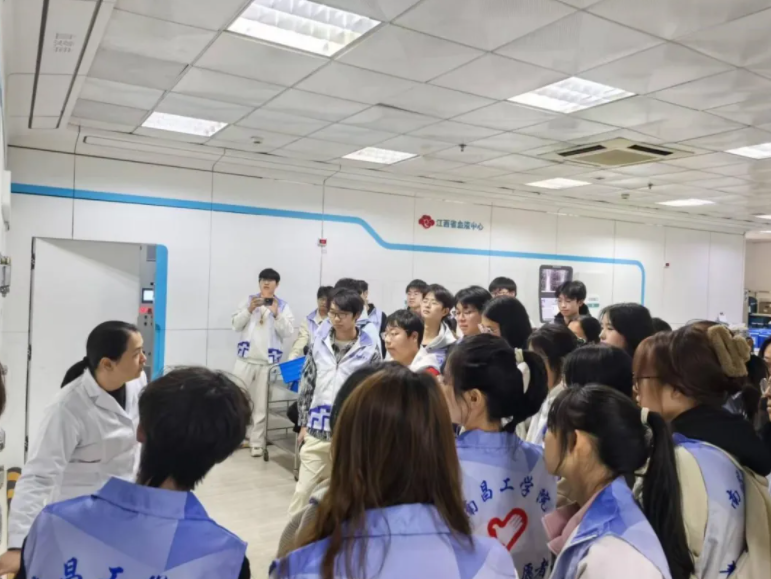 2025年11月25日,南昌工学院青年志愿者协会的志愿者到我中心参观学习。在工作人员引导下,大家先后参观了血液采集室、成分制备实验室以及血液检测中心等地方,深入了解献血健康筛查、采集规范等关键环节,感受现代供血技术的独特魅力。同时,他们还学习了无偿献血的相关知识。