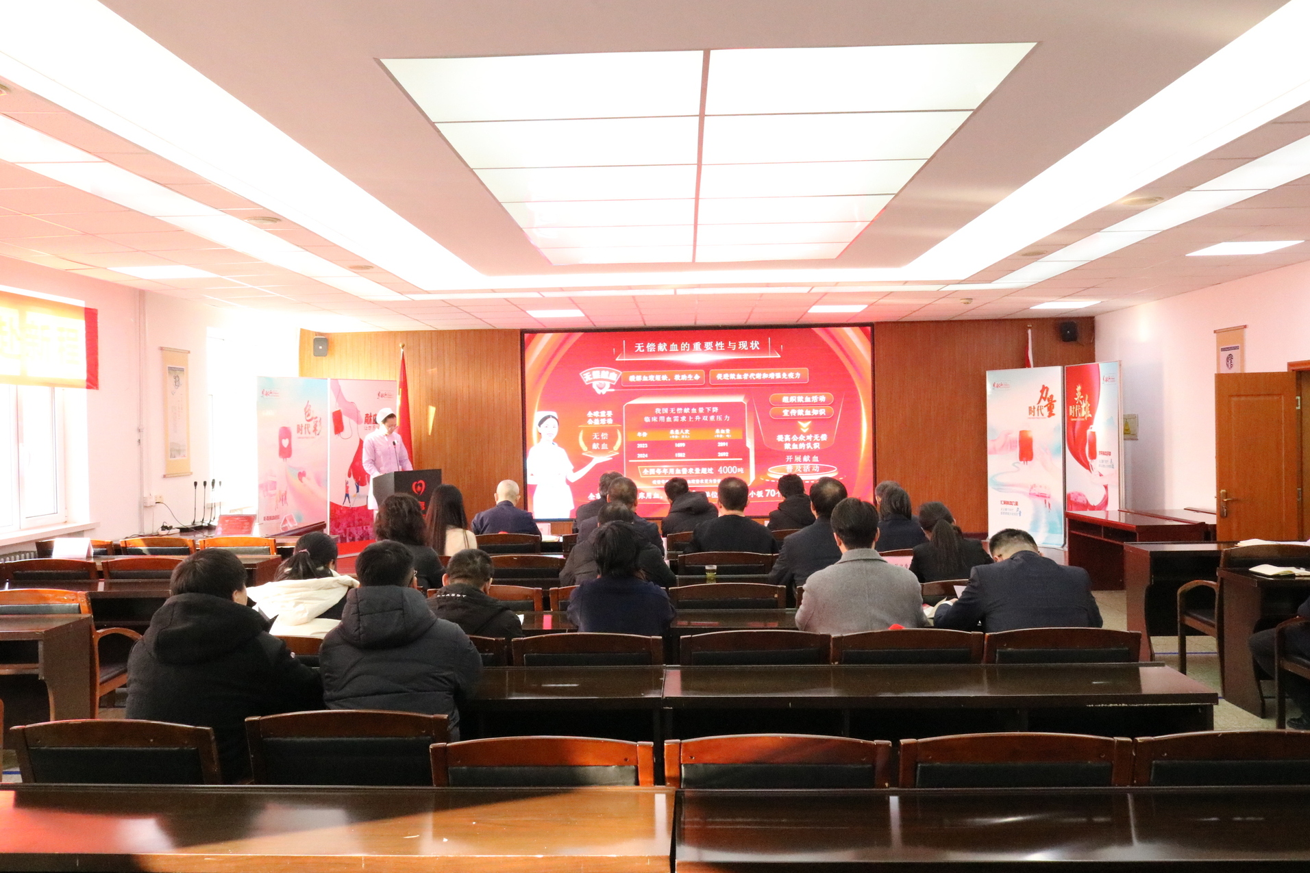 会前,全体参会人员实地观摩了市中心血站无偿献血科普教育基地,详细了解无偿献血科普知识、献血流程规范、血液处理技术及临床应用等内容。市中心血站刘丹丹针对无偿献血相关法律法规、献血者权益保障等相关政策进行解读宣讲。