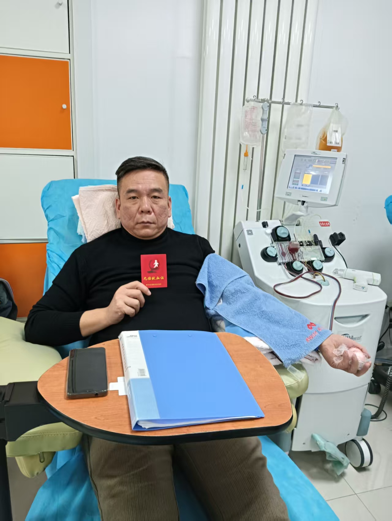 杜超是名副其实的“献血老兵”。回溯至1993年,正值青春年华的他在军营中毅然挽起衣袖,献出了人生第一份热血。自此,这份赤诚的爱心便如涓涓细流,从未停歇。翻开他的献血档案,一串串数字见证着三十年的坚守:累计捐献全血9次,总量3400毫升;单采血小板11次,21个治疗量。今日,经过严格体检与初筛,杜超再次成功捐献2个治疗量的血小板。采血过程中,他神态安然,仿佛只是日常里一件寻常小事。