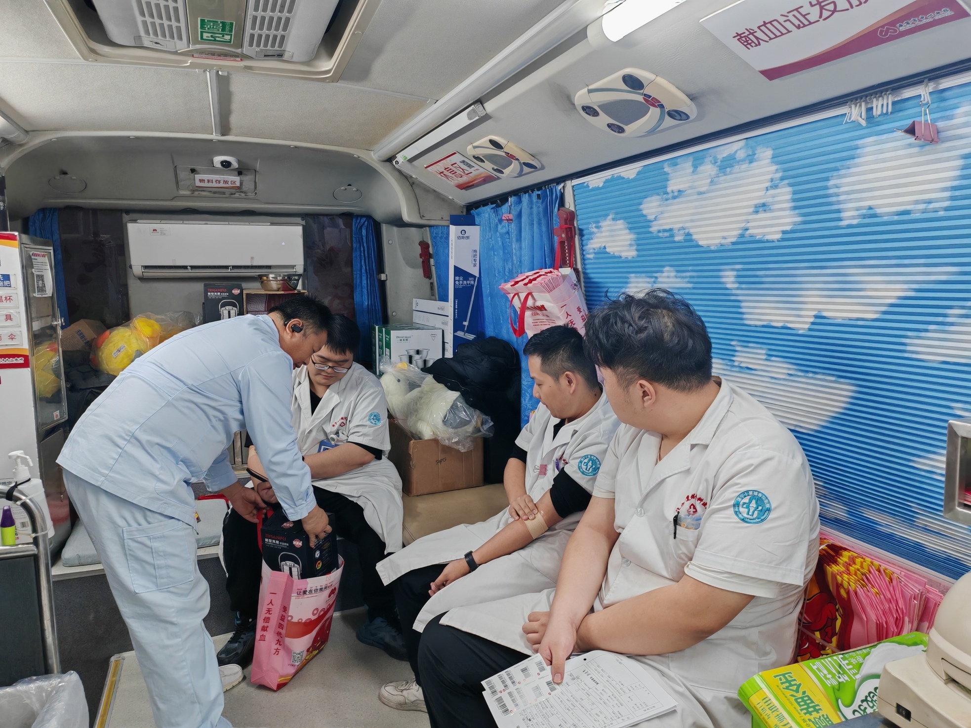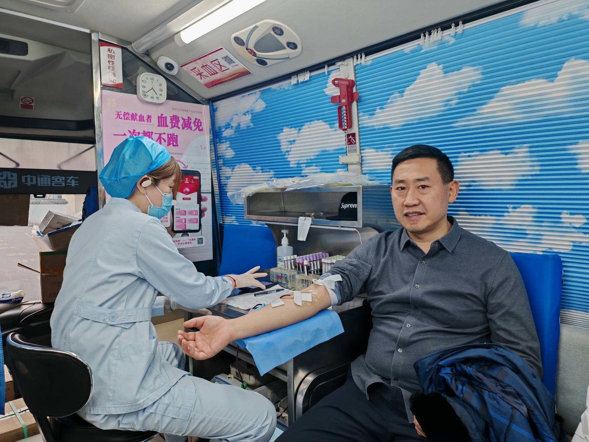 在献血现场,大家井然有序地填写登记表、测量血压、进行血液初筛,符合条件的人员依次进入采血车献血。刚给病人做完治疗的骨科医院王长猛院长擦了擦额头的汗,笑着说:“平时我们在医院为患者解除病痛,今天能用献血这种方式守护生命,感觉特别有意义。”医务部主任赵晓静更是多次参与献血,并已获得无偿献血奉献奖,他表示:“每一袋血液都可能为危重患者带去希望,作为医务工作者,我们更应该扛起这份责任。”