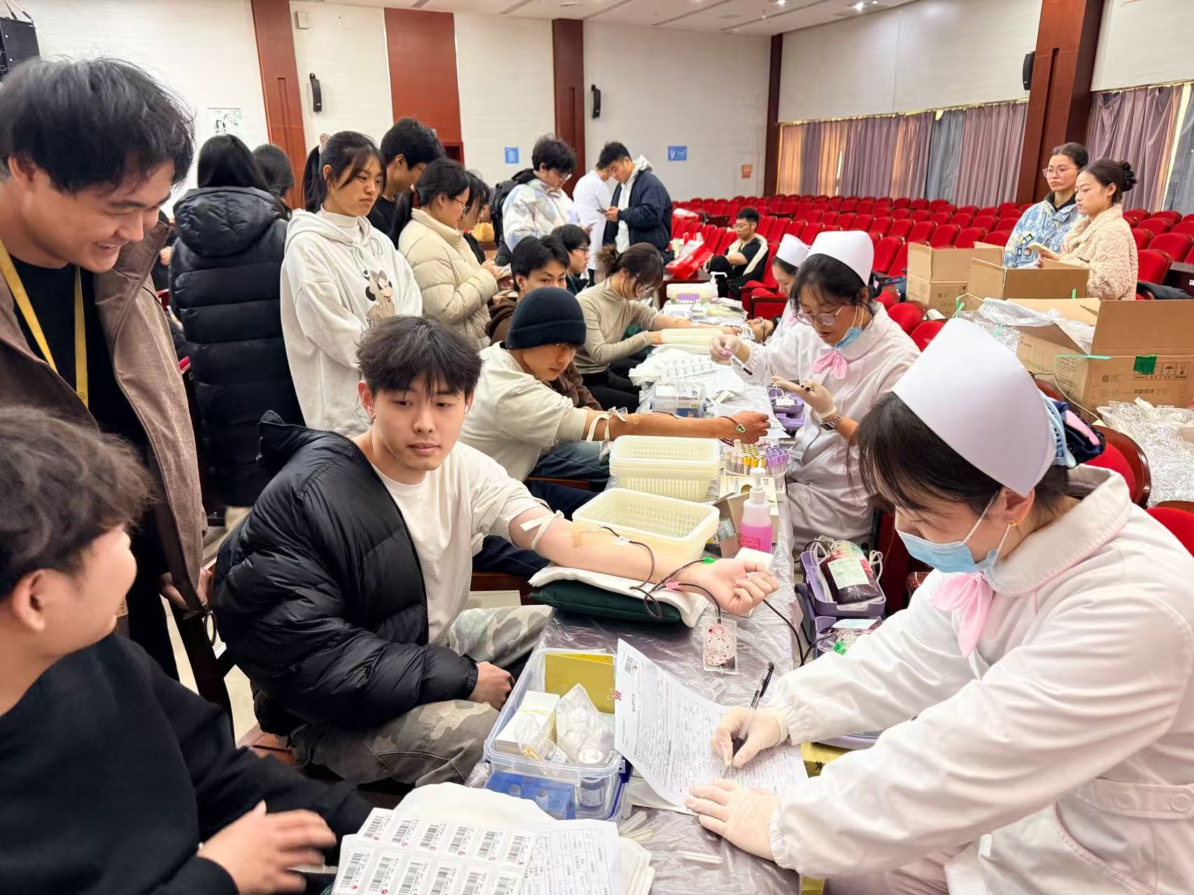 在老师们的感召下,年轻学子们也纷纷挽起袖子,用青春热血诠释责任与担当。首次献血的学生杨胜燕捐献了200毫升血液,脸上满是兴奋与自豪:“第一次献血特别开心!希望我的血能真正帮助到有需要的人,看到大家都这么积极,我也觉得特别有意义。”