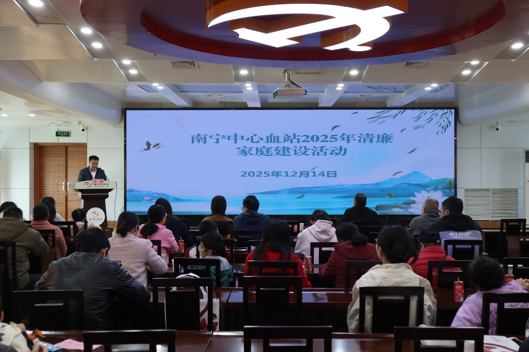 为深化全面从严治党,筑牢血站干部职工拒腐防变的家庭防线,12月14日,南宁中心血站举办清廉家庭建设系列活动。活动由血站党委副书记、纪委书记刘闯主持,融合廉政谈话、集体家访、家庭互动等内容,将廉政教育与家庭温情、采供血业务深度融合,以“家”助“廉”,共推清廉血站建设。血站干部职工及家属代表近100人参与活动。