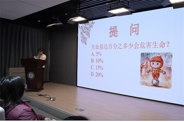 “猜猜自己的体内有多少血液?”讲师抛出速算题,通过“血液约占体重7%~8%”的简单公式,让同学们现场计算自身血液总量。一位同学惊呼:“原来我体内的血液相当于4瓶半矿泉水的量!”笑声中,血液比重概念悄悄扎根。