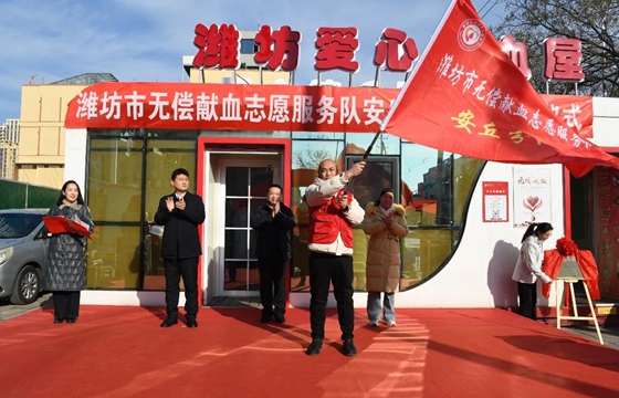 12月15日,潍坊市无偿献血志愿服务队安丘分队成立启动仪式在安丘市爱心献血屋温暖启幕,启动仪式中进行了授旗和“学雷锋志愿服务基地”揭牌活动。