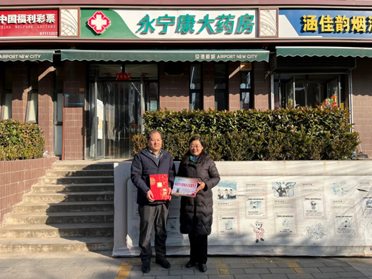 西郭村拆迁后,村民们都住进了幸福里小区。张永宁在小区门口经营着永宁康大药房,还承担着公共卫生工作,在向居民们普及卫生健康知识的同时,也会积极推广无偿献血公益理念,介绍无偿献血知识和无偿献血者的相关权益,呼吁健康适龄居民多关注并参与无偿献血。在他的带动影响下,同村的村民、身边的亲戚朋友也纷纷加入无偿献血的爱心队伍。