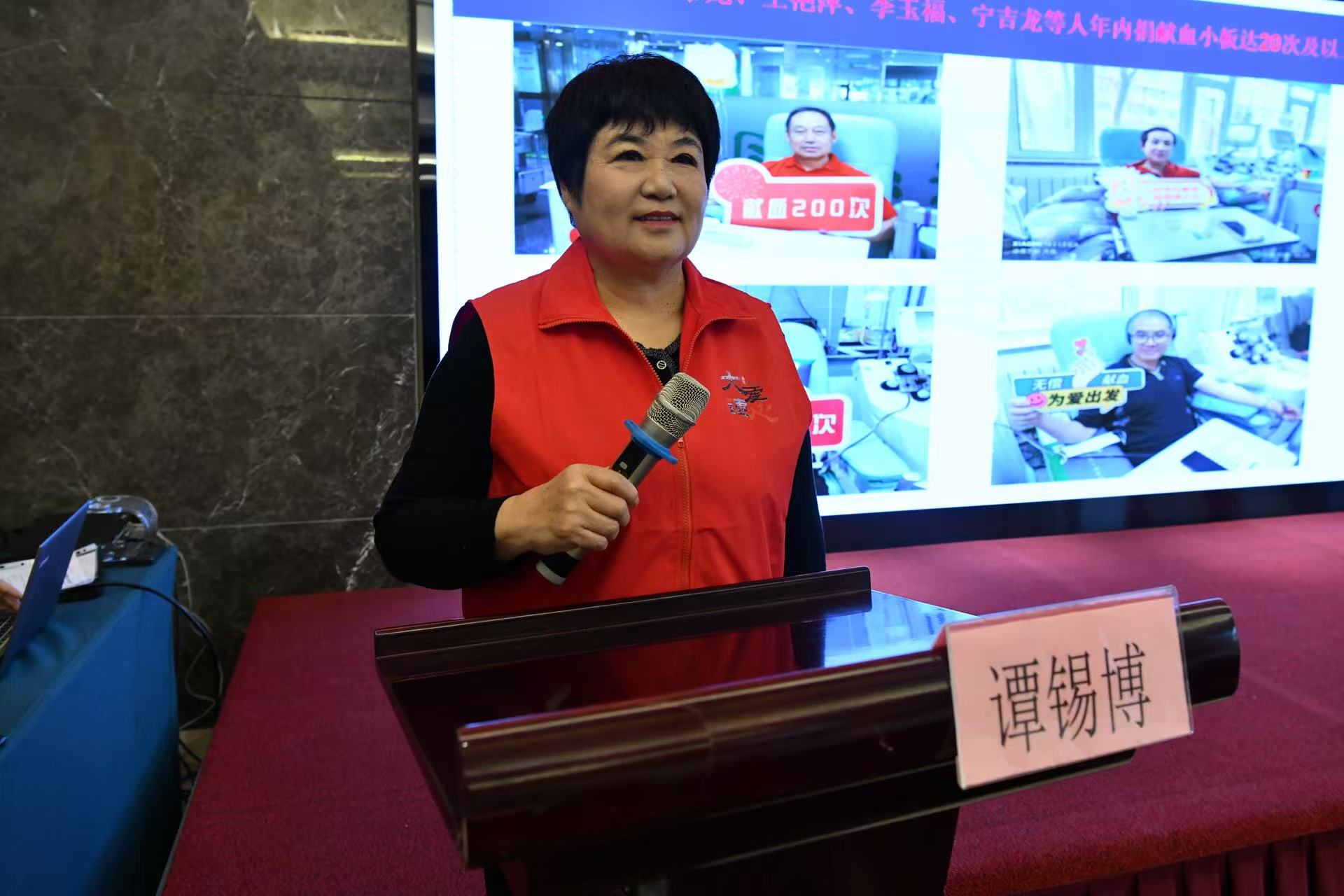 在典型事迹分享环节,一个个感人至深的故事传递着公益路上的坚守与温情。郭希龙以《献血书写大爱,服务矢志不移》为题,深情讲述了献血达人谭锡博队长的公益历程 --累计献血总量达15万多毫升,创下连续69个月每月捐献2个治疗量血小板的纪录,即便丈夫突发重病仍坚守志愿服务岗位,用行动诠释“一切献给党”的赤诚。