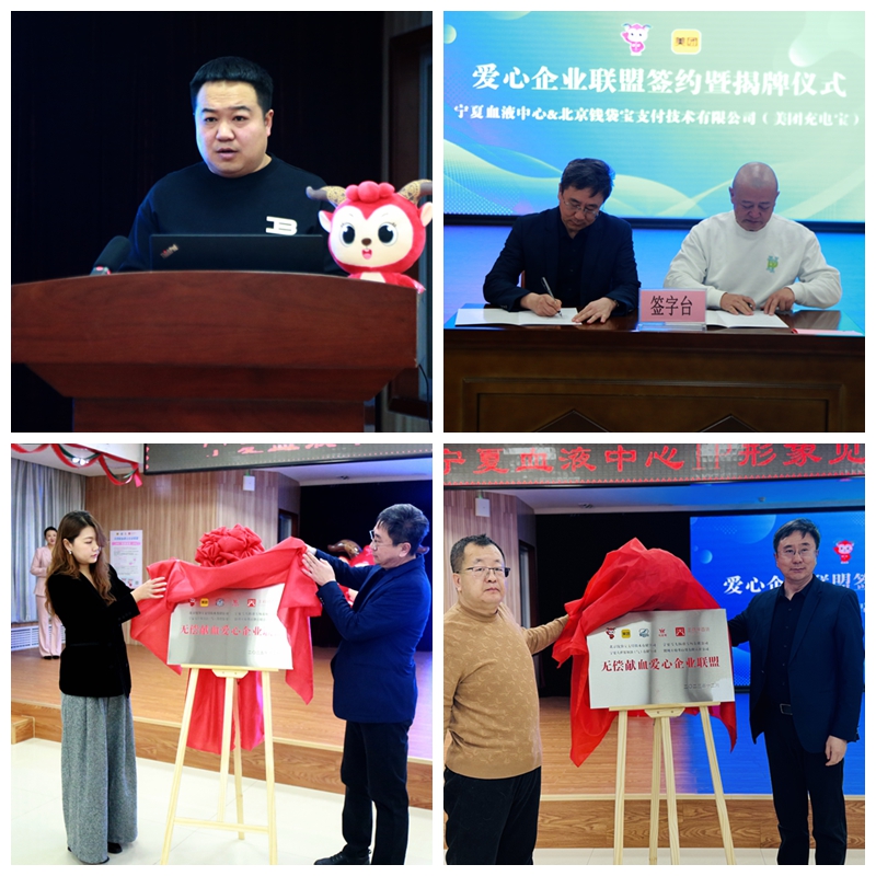 活动现场,北京钱袋宝支付技术有限公司(美团充电宝)、宁夏雪飞扬滑雪场有限公司、宁夏大世界加油(气)有限公司、银川王府井百货有限责任公司四家企业代表,与宁夏血液中心签订爱心企业联盟共建协议,正式成为银川市首批爱心联盟共建企业。爱心企业代表依次登台发言,纷纷表示将主动扛起社会责任,以更丰富的优惠举措回馈献血者的无私奉献,用实际行动践行企业的公益担当,为无偿献血事业发展添砖加瓦。