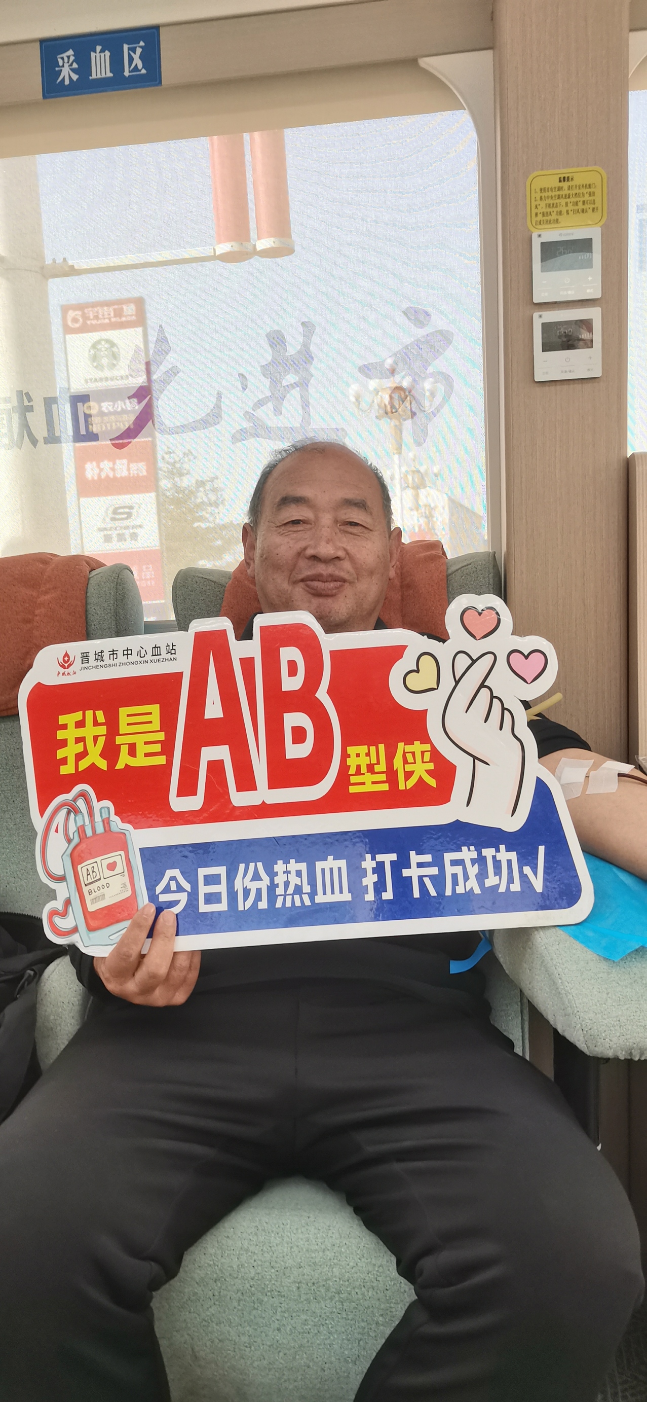 在阳城宇佳广场前的采血车上,一位面容慈祥的献血者吸引了大家的目光。他叫张红太,今年59岁,是凤城镇坪头村人。今天,是他第18次献血,也是最后一次献血。