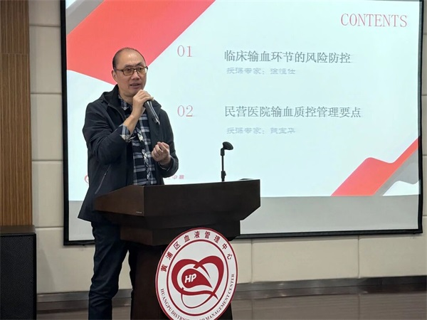 主任,他们分别就“临床输血质控控制规则和实践“和“临床输血环节的风险防控”展开培训交流。结合临床典型案例,梳理输血全流程潜在风险点及防控关键措施,对标质控标准,系统讲解临床输血质控法条的制定背景、核心目的与实施要点,为参训人员提供了可落地的实践指引。培训以实例为支撑,法条解读全面细致,既强化了参训人员的质量安全意识,又提升了其规范操作与管理能力,为今后优化临床输血质控工作、保障医患安全筑牢了坚实基础。