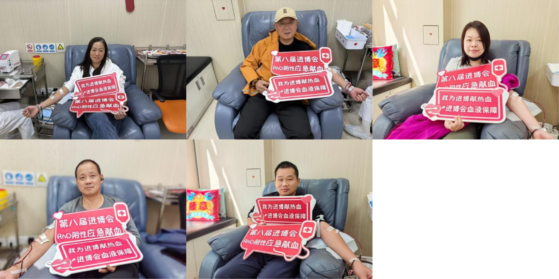 为贯彻落实《关于做好第八届中国国际进口博览会应急献血工作的通知》(沪血办〔2025〕47号)文件精神,保障进博会期间医疗工作的顺利开展,普陀区血液管理办公室认真梳理本区RhD阴性无偿献血志愿者名单,逐一联系符合条件的志愿者,最终于进博会前夕成功组织5名RhD阴性献血志愿者捐献热血1800ml。