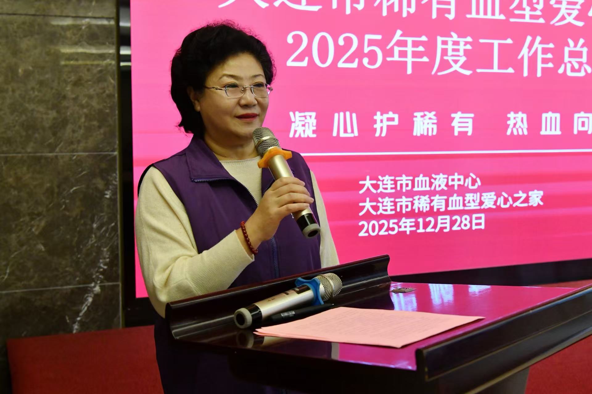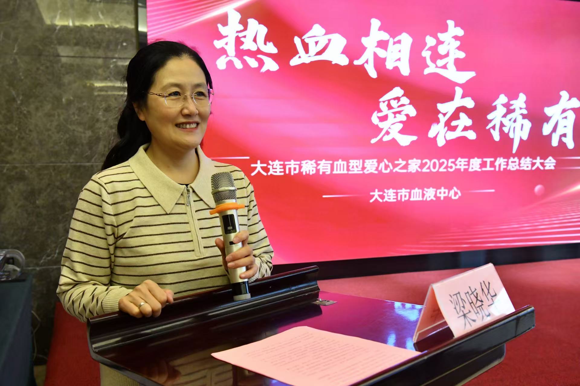 最后,大连市血液中心主任梁晓华作总结讲话。她向关心支持稀有血型爱心之家的各界人士表示感谢,向全体“熊猫侠”致以崇高敬意。她说,2025年,稀有血型爱心之家的“熊猫侠”们在应急献血中勇担使命,在公益宣传中播撒火种,在公益服务中传递温暖,用平凡善举铸就不平凡精神。她希望“熊猫侠”们未来能继续筑牢应急保障防线、持续扩大公益宣传影响、不断深化品牌建设,血液中心也将持续加大支持力度,与志愿者们携手筑牢生命防线,让“熊猫侠”精神融入城市基因,为“健康大连”建设注入更多温暖力量。