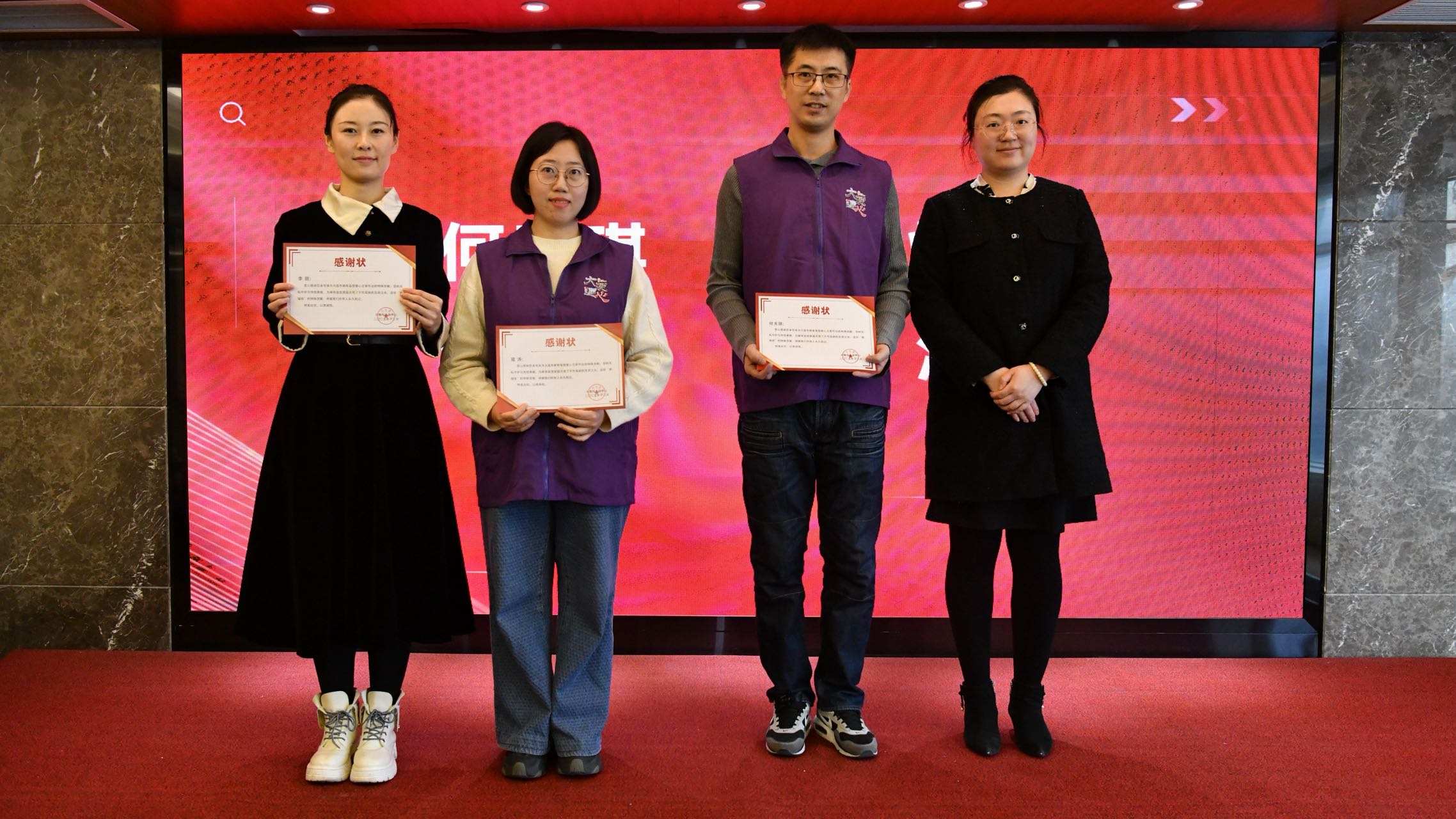 市委宣传部文明培育处副处长周国颜为何天琪、李丽和寇涛颁发感谢状,感谢她们长期以来对稀有血型爱心之家发展做出的重要贡献。