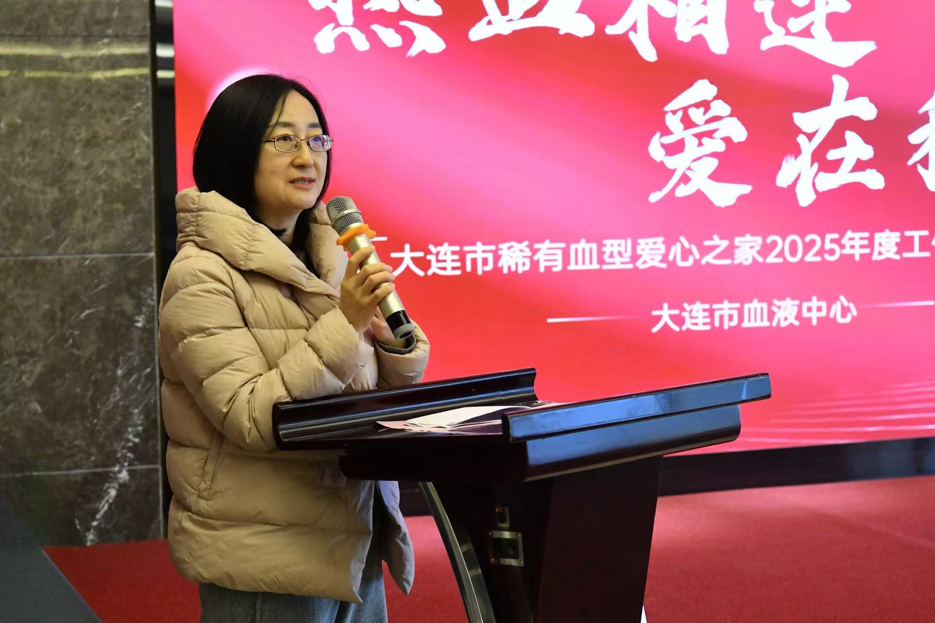 大会伊始,大连市稀有血型爱心之家宗爱玲队长作年度工作报告。她说,大连市稀有血型爱心之家成立八年来,志愿者们因稀有血型结缘,以“熊猫侠”之名践行公益使命,8年间累计捐献热血超40万毫升。2025年,团队秉持“血型稀有,大爱无疆”理念,聚焦应急献血保障、宣传招募、多元公益及品牌建设四大任务。面对稀有血型临床用血的特殊需求,爱心之家交出亮眼答卷:全年组织应急献血84人次,献血量达31400毫升,其中14名志愿者献血2次以上。