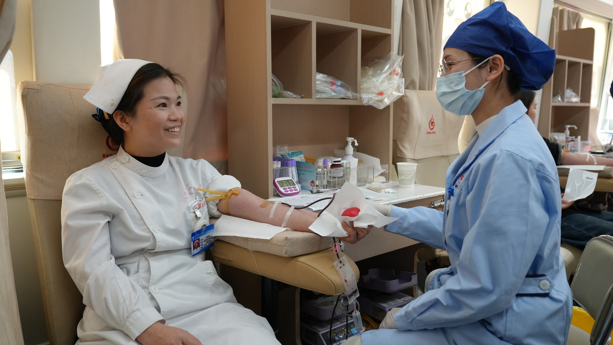 在横州市卫健局,献血活动同样有序开展,来自临床、护理、医技、行政等各部门的员工踊跃参与。“在基层,我们同样感受到用血的需求和血液的珍贵。医务人员带头,最能打消群众的顾虑。”横州市妇幼保健院产科副主任郑辉媚表示。许多年轻医护人员、实习同学也在前辈的带动下,勇敢地献出了人生的第一份热血,让爱心传承有了新的延续。