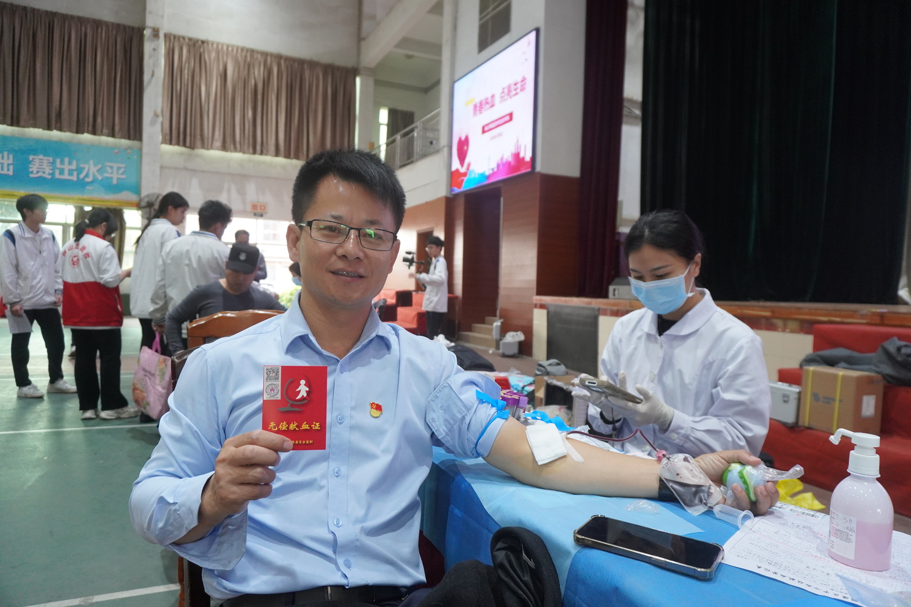 另一所校园里,田严生老师刚结束第11次献血。作为党员教师,他用最简单的语言解释着不简单的坚持:“需要的时候,我正好有。”