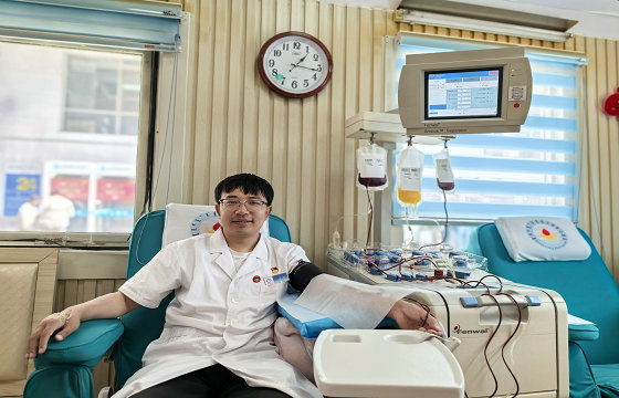 在活动中,我站党员干部被赋予“冲锋者”与“示范者”的双重使命。全体党员主动亮明身份、扛起责任,让党旗在无偿献血一线高高飘扬,职工形成“跟着党员干、跟着榜样走”的献血热潮,郝玉英站长以身作则,今年第五次走进献血屋、三次捐献机采血小板,以实际行动诠释着“领头雁”的责任与担当;国家“无偿献血奉献奖”金奖获得职工杜国栋面对已经填写好的体检单,但尚未到期无法捐献的提示,眼里充满了遗憾与不舍,连说“还有四十天就可以再献了”。血液保障科科长丁芳今年连续两次参加无偿献血。质量管理科赵淑芳今年内三次参加无偿献血,在守护生命中展现职业风采。