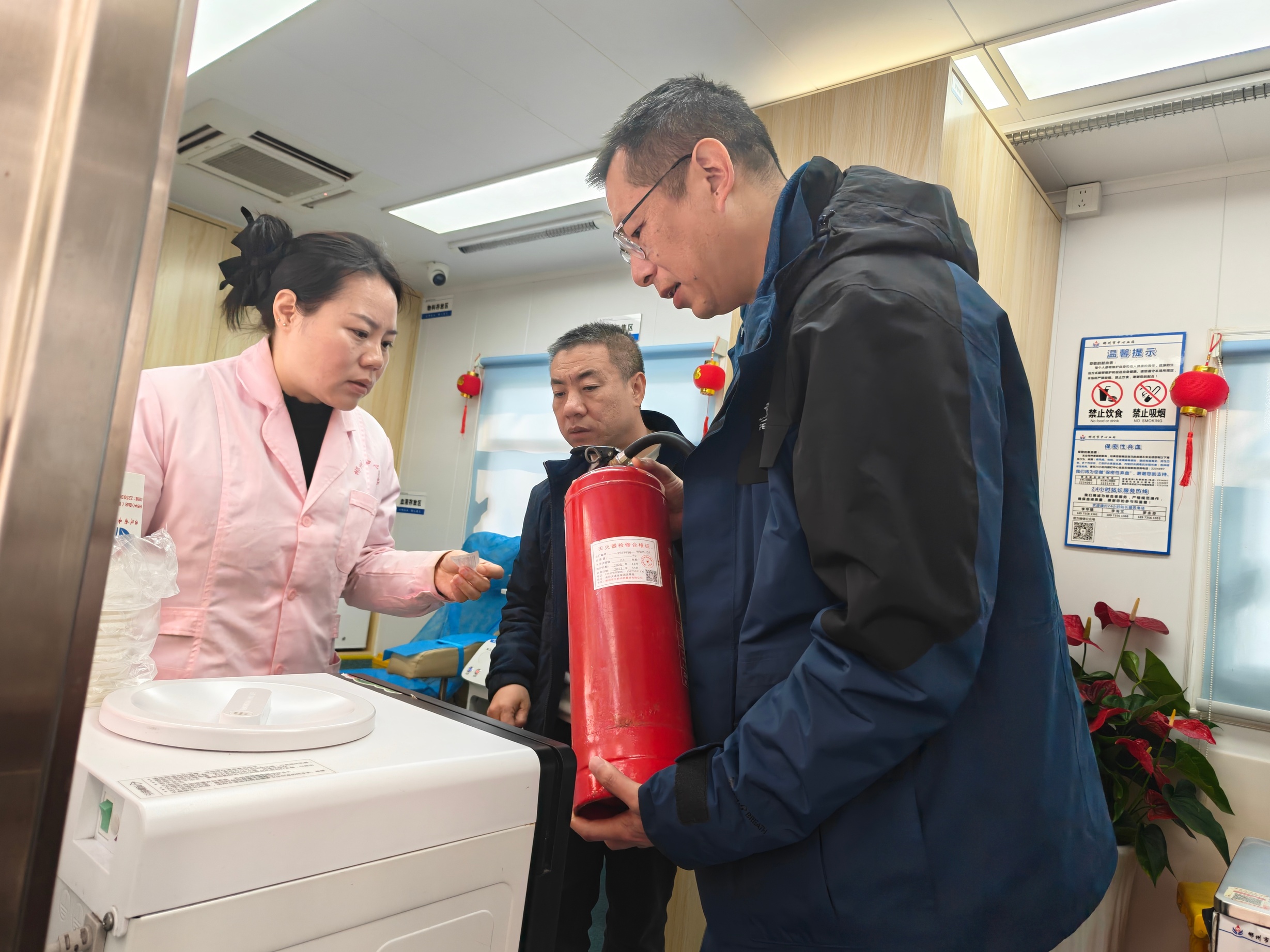 检查过程中,郴州市中心血站党委书记、站长李华雄强调,元旦期间是采供血保障的关键时段,安全生产工作容不得丝毫松懈。各科室要切实绷紧安全之弦,全面增强安全意识与责任意识,从严抓实消防安全、设备安全、交通安全管控,落细落小用水用电日常管理,严格落实节日期间值班值守制度,以万全准备防范各类安全事故发生,切实筑牢采供血安全屏障。