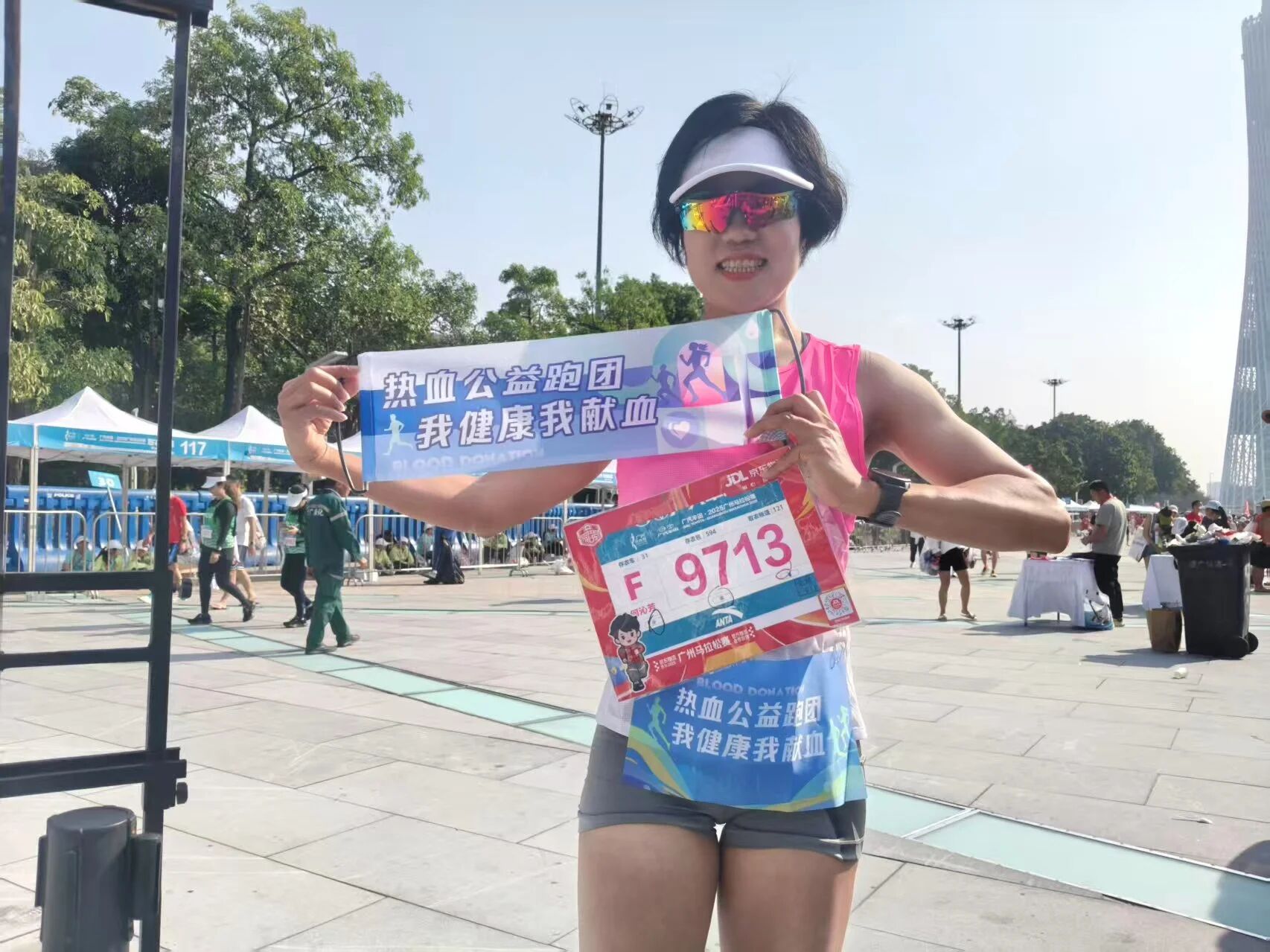 4.何沁芳:“2015年,我在健身中与马拉松结缘,2023年,在健身搭子的介绍下加入了献血队伍,至今已献血13次。献血者和跑者的双重身份,让我的生活作息更规律,饮食习惯更健康,希望能一直保持下去。”