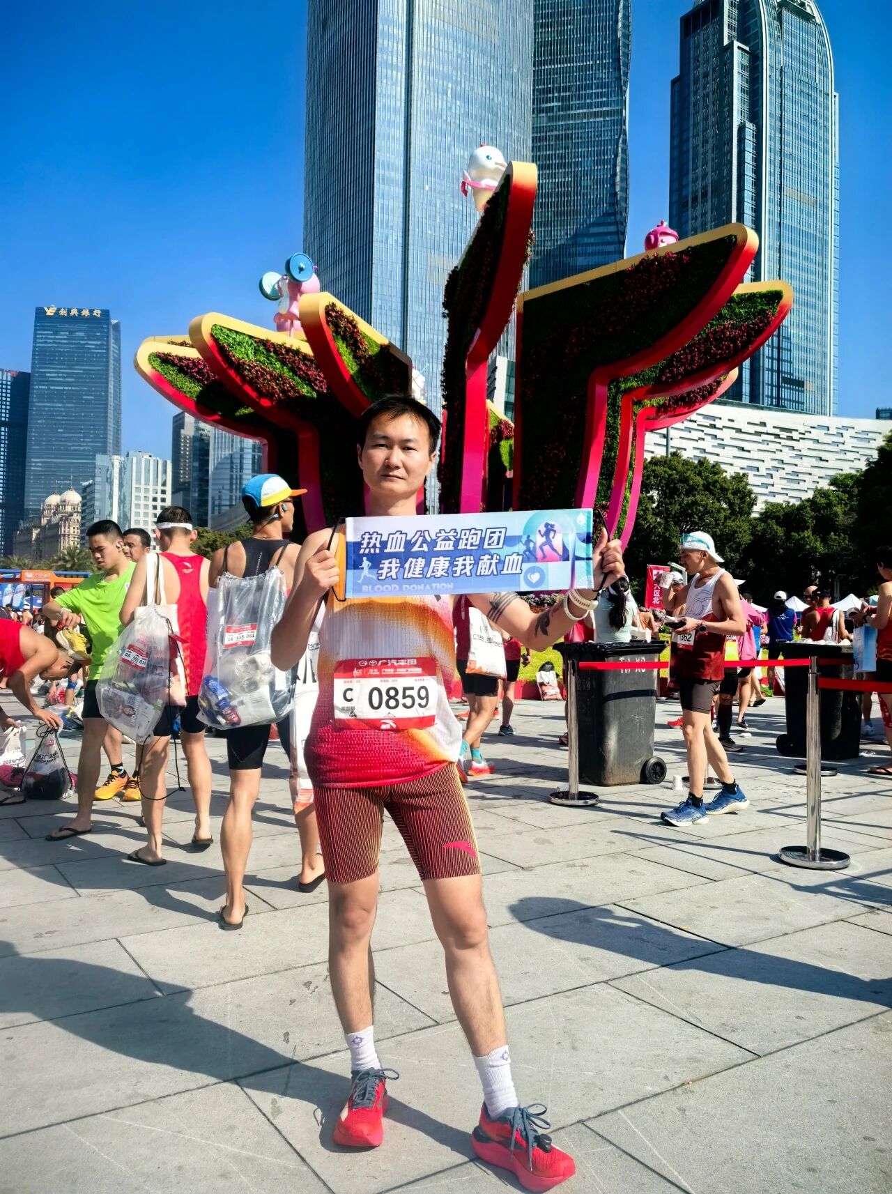 2.李国杰: “2022年,我第一次走进献血屋,在此之前我担心献血影响健康,直到看到疫情期间用血紧张的新闻,才下定决心迈出第一步。如今献血已成习惯,还获得了广州市无偿献血优待证(A)。” “为了保持良好的工作状态,跑步是我多年的坚持,今年有幸中签广马与黄马,我在赛场主动宣传无偿献血,用奔跑证明,献血不影响身体状态,未来,我将继续奔跑,用热血传递希望,以脚步践行担当。”