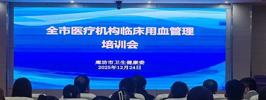 为高质量落实《临床用血技术规范(2025年版)》,进一步规范临床用血管理,在省卫生健康委组织临床用血管理培训会后,2025年12月24日廊坊市血液质量管理与控制中心组织了“全市医疗机构临床用血管理培训会”。会议由市卫生健康委卫生应急科副科长梁成刚主持,市中心血站主要负责同志、分管负责同志和相关科室负责同志以及来自全市临床用血医疗机构的医务科、输血科、质控科和临床重点用血科室的负责人共计100余人参加了会议。