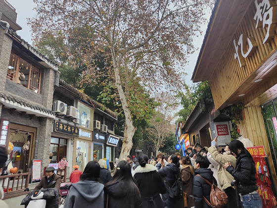 动人的乐声、可爱的舞姿、有趣的科普,仿佛就是一场“3D立体”表演秀,引得路过的行人纷纷驻足,大家或倚在巷口静静聆听,或拿出手机记录这难得的跨年日盛景,此时此刻,献血屋的窗口俨然成为了昙华林当天最具人气的“音乐舞台”。
