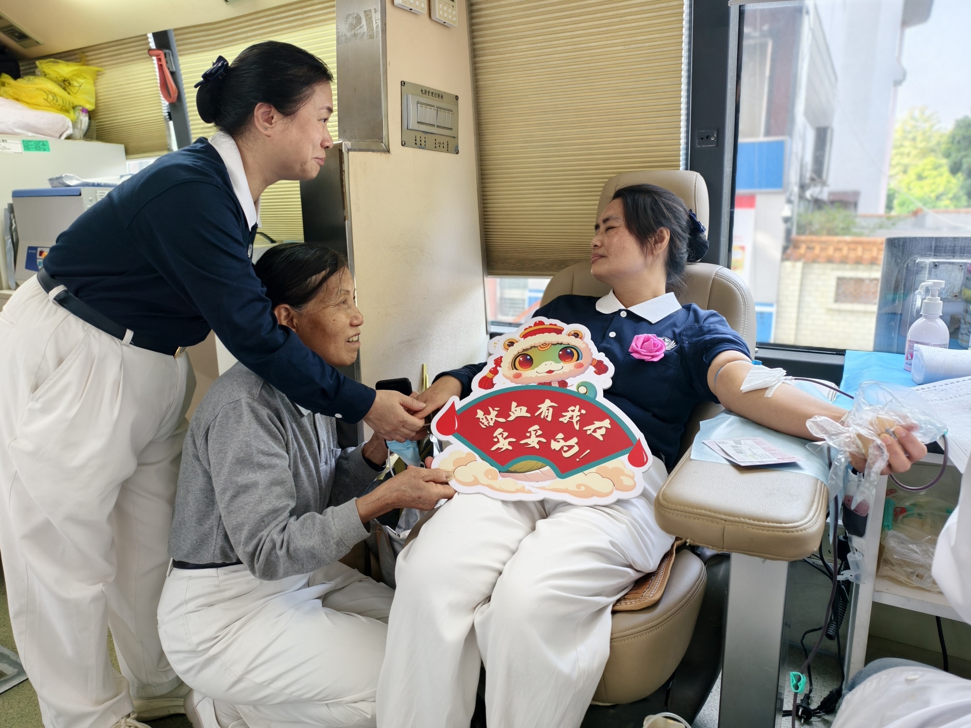 慈济志工身着统一蓝衣白裤,静静坚守在自己的岗位上。从签到、填表、体检到献血、休息,每一个环节都有他们的温柔守候,他们用眼神传递鼓励,用话语化解紧张,让每一位献血者都感受到被尊重、被认同、被看见的美好体验。