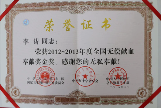 近日,李涛来到咸阳市中心血站献血办,领取了全国无偿献血奉献奖银奖。他66次献血18800毫升。畅谈爱心历程,分享奉献快乐。李涛的爱心担当值得每一个渴望创业成功的年轻人借鉴和学习。