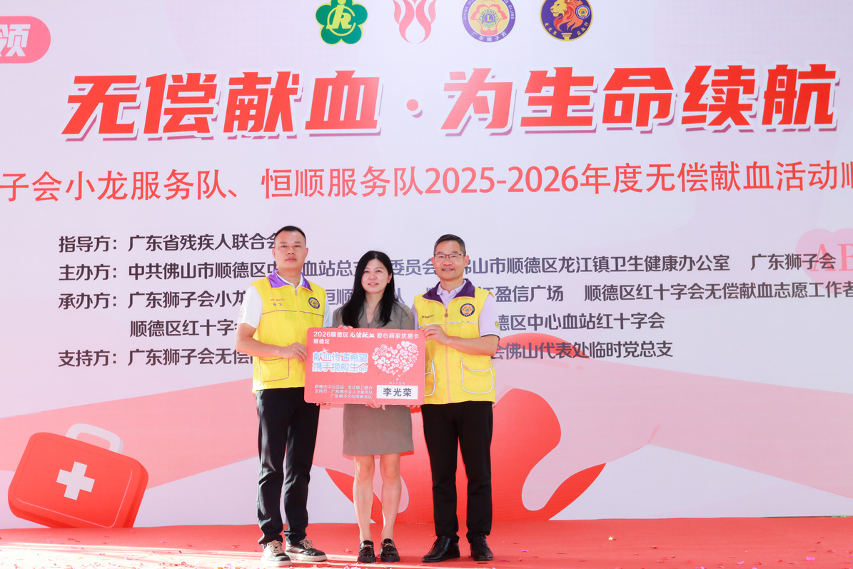 本次活动已是顺德区今年举办的第9场广东狮子会无偿献血活动,广东狮子会各服务队真情奉献,在党建引领下持续汇聚公益力量。在此,顺德区中心血站感谢他们的真诚付出,并号召全社会以他们为榜样,挽起衣袖,献出热血,让更多生命因我们的爱心得以延续!