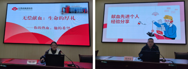 随后,省血液中心副主任技师熊莉为大家带来无偿献血知识讲座,就献血知识、注意事项、《江西省献血条例》中关于无偿献血“三免”优待措施等内容进行细致讲解。接着,全国无偿献血奉献奖金奖获得者中心健康服务监测科周梦阳同志现场分享了他的长期献血经历,朴实话语中流淌的真情,让在座每一位同志都深切感受到“献血救人”的意义,也为随后的献血活动注入了温暖而坚定的力量。