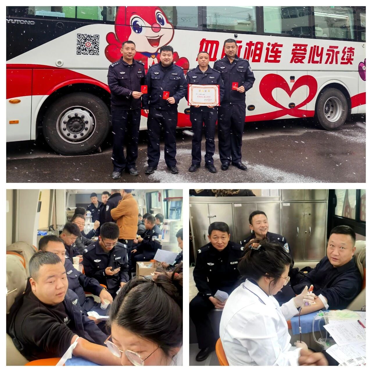 雨雪纷飞寒意浓,爱心献血暖人心。1月19日,宝鸡市陇县公安局、宝鸡市千阳县公安局积极响应无偿献血号召,分别组织团体献血活动。几十名民警闻令而动,冒雪赶赴采血现场,用实际行动诠释为民担当。