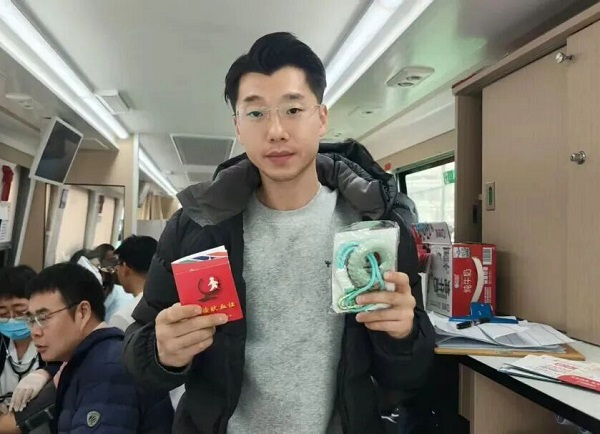 栾志才每年都坚持献血,他说献血对身体没有损害,还能为社会、为需要的人做点贡献,挺高兴的,希望自己可以帮助更多的人。