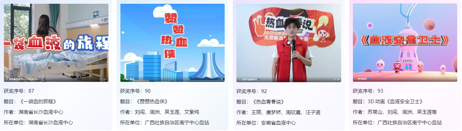 ​ 在附件1《健康知识普及行动—2025年新时代健康科普作品征集活动优秀作品名单》中,聚焦输血行业的优秀作品来自于湖南省血液中心、南宁中心血站、安徽省血液中心、上海市血液管理办公室、上海市血液中心、徐州市红十字血液中心;在附件2《通报表扬单位名单》中,上海市血液中心荣誉登榜,祝贺他们!