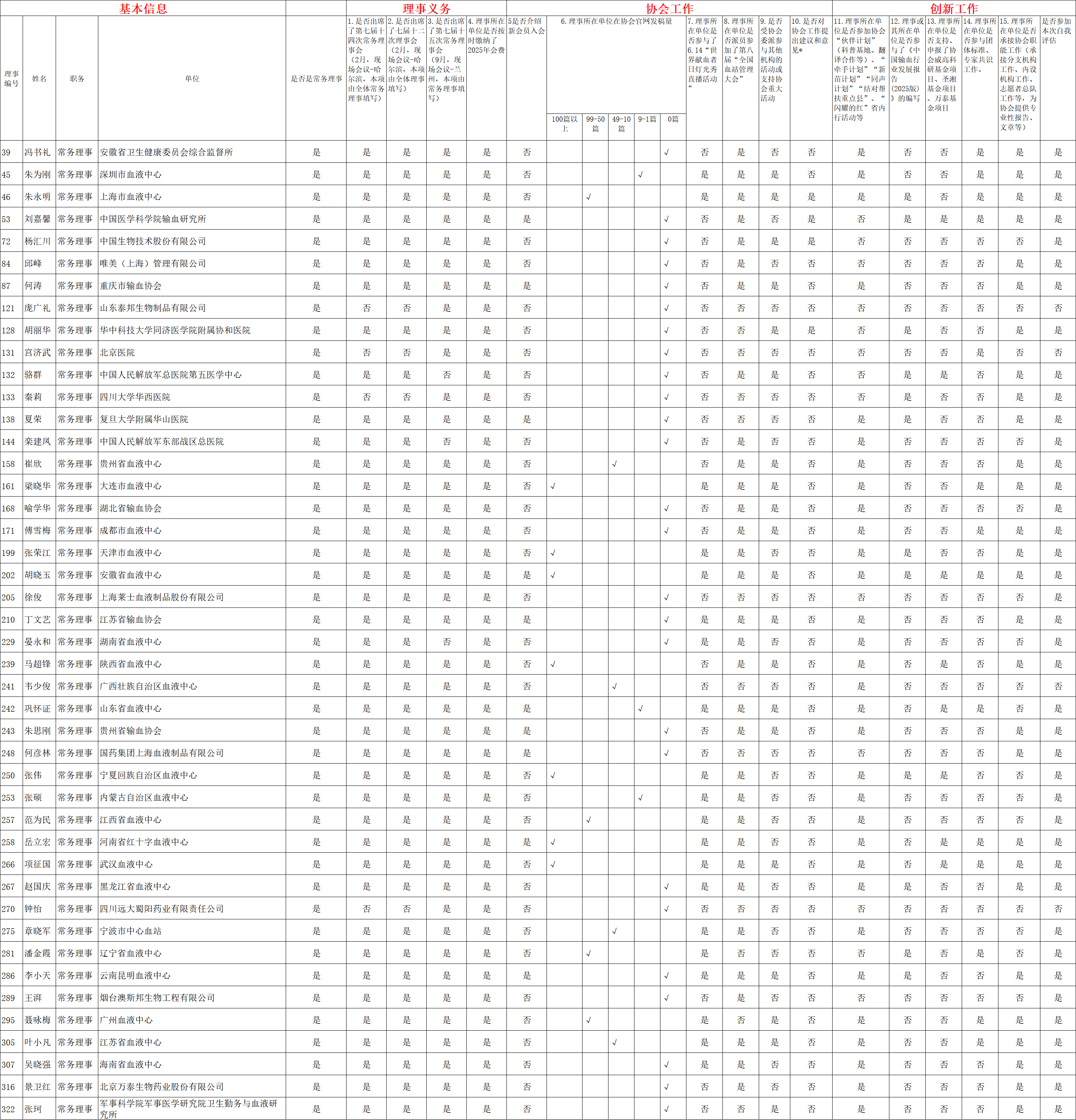 2025年是“十四五”规划的收官之年。中国输血协会在理事会的领导下,在各级党委和政府部门的领导下,围绕国家战略部署,围绕卫生健康工作重点,坚持“围绕中心、服务大局”,努力践行“服务会员、服务行业、服务政府、服务社会”的工作宗旨,紧紧依靠全体会员单位、各分支机构及行业专家的力量,聚焦宣传无偿献血、拓宽行业服务体系、强化行业自律规范、激发科研创新活力、深化内外交流合作等核心任务。坚持规范办会,营造风清气正、干事创业的良好氛围,携手开创协会事业新局面,为促进输血行业持续健康发展做出了贡献。2025年12月30日,通过电子邮件形式,协会向145名理事发出了《关于开展2025年度中国输血协会理事履职情况考评工作的通知》,共有115名理事认真、及时地给予了反馈。