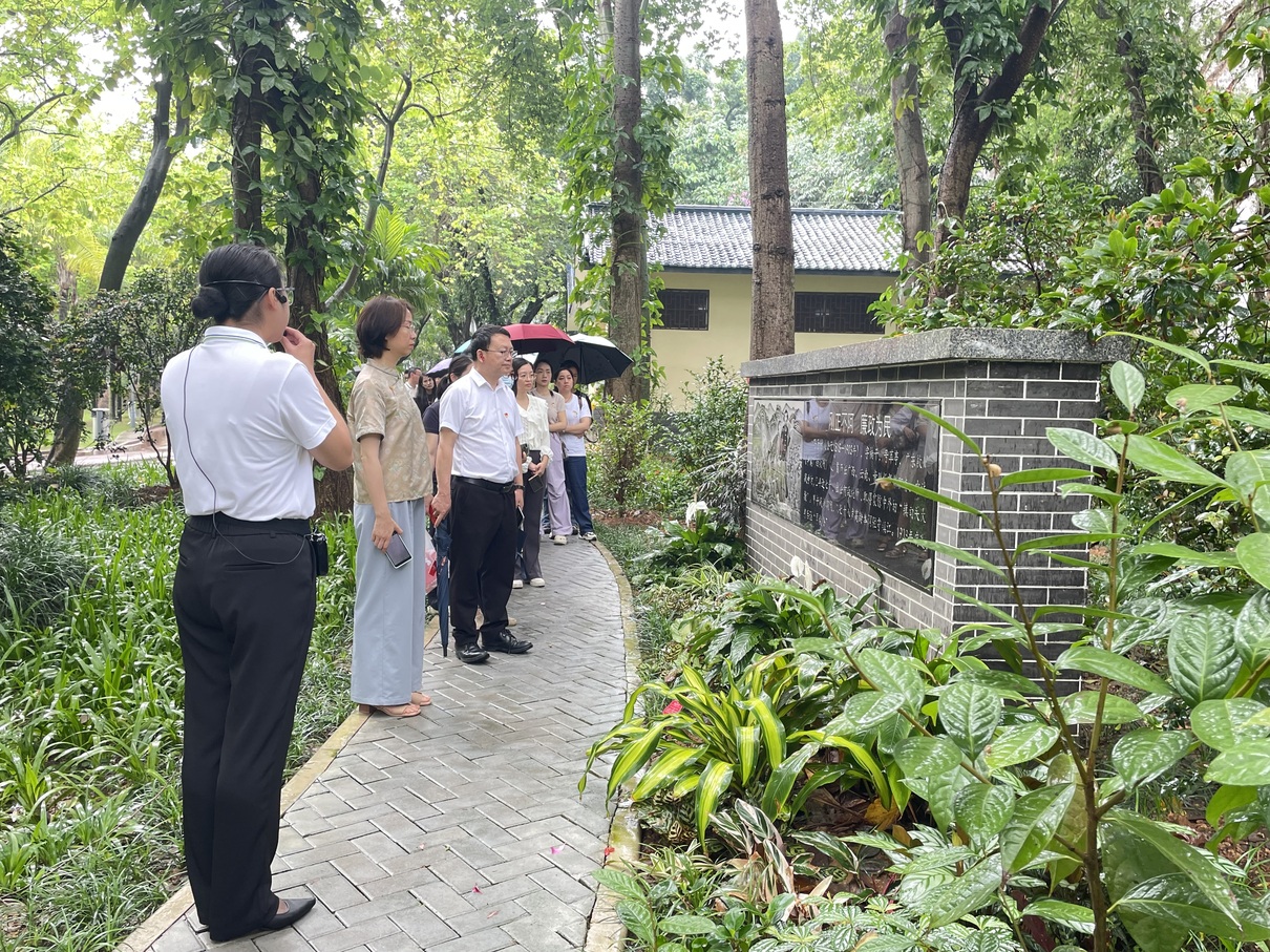 南宁中心血站党员干部职工认真倾听金花茶公园廉洁文化主题园讲解员分享浮雕墙上的廉吏故事
