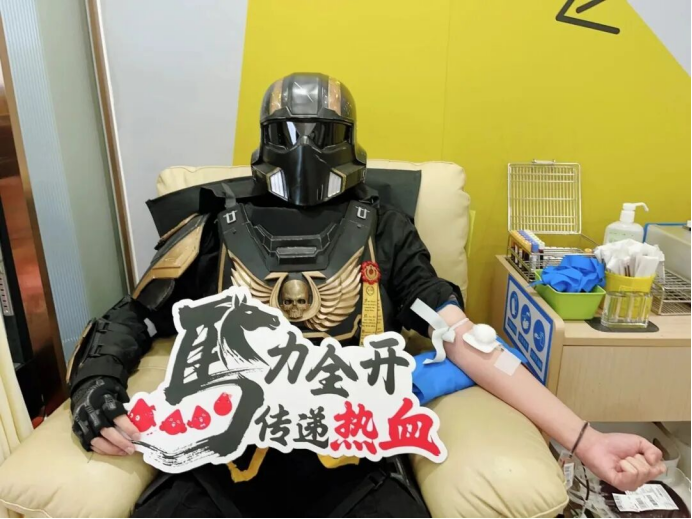 “献血也能这么‘燃’!”身穿Coser服来献血的动漫爱好者袁先生说:“平时会在动漫活动中为爱好发电,今天真正为生命‘发电’,感觉特别有意义。”