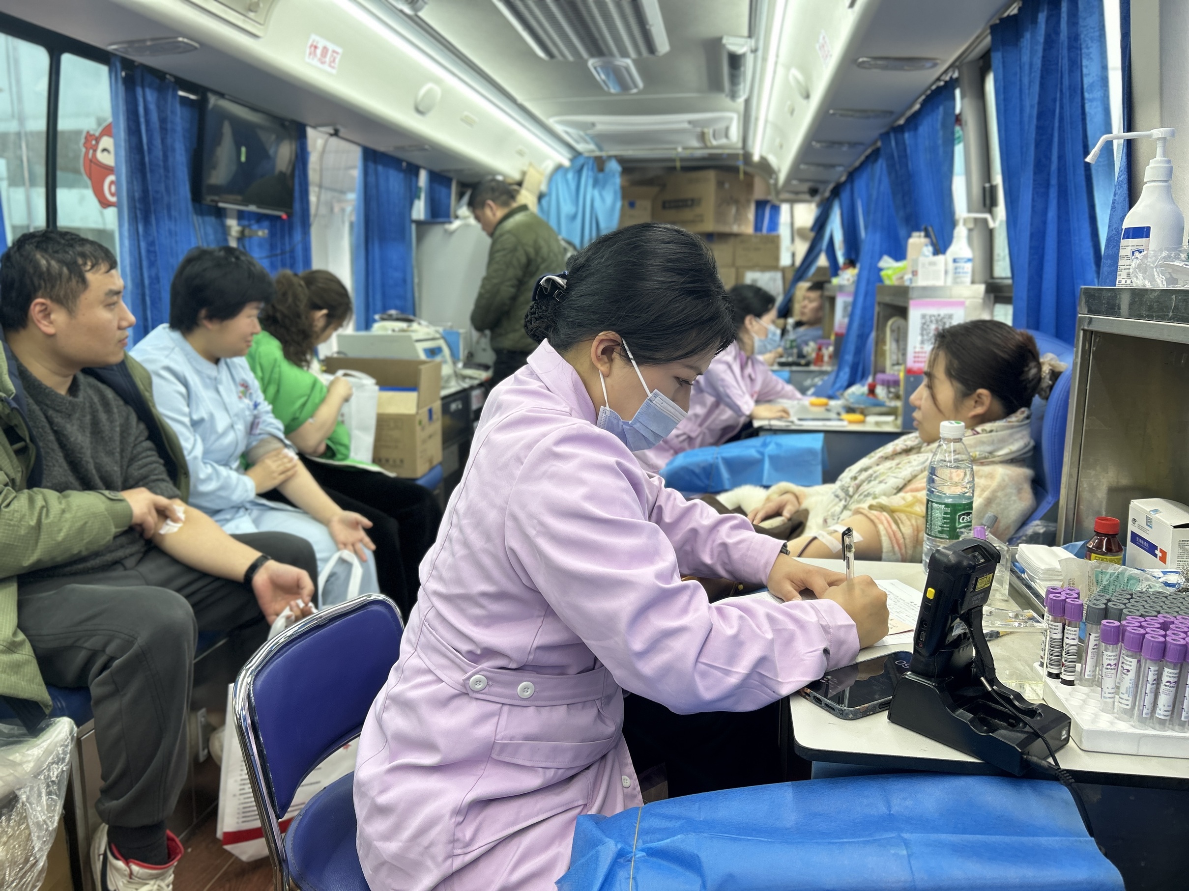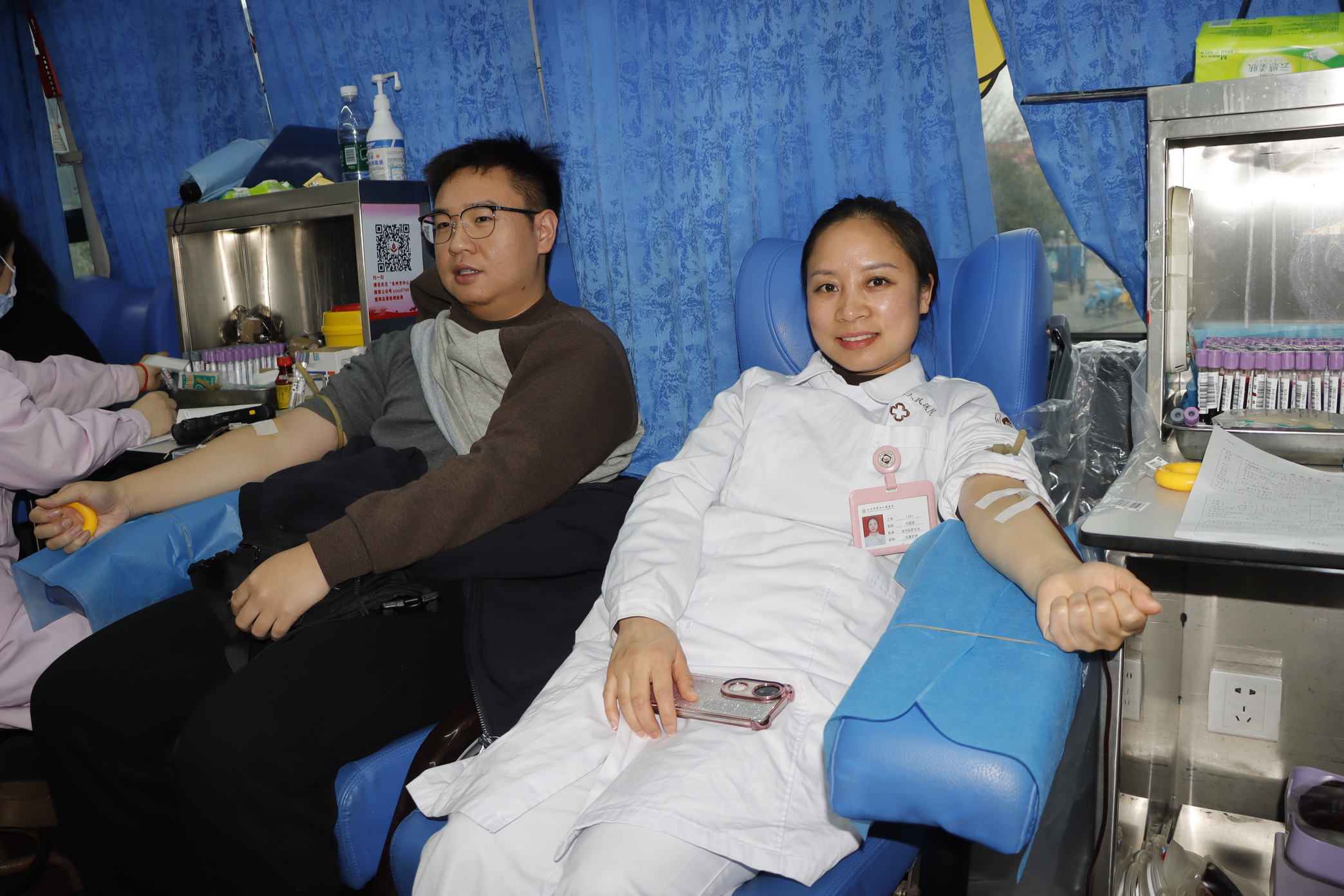 献血现场暖意融融,动人场景接连上演:刚下手术台、结束查房的临床医护,脱下白大褂便快步加入队伍;行政后勤人员错峰调配工作,主动奔赴爱心之约;年轻规培生、实习生以先辈为榜样,首次挽袖献血,让青春热血汇入生命守护的洪流。队伍中既有常年献血的“爱心标杆”,也有初献爱心的“热血新生”,不同岗位、不同年龄的医务工作者,因守护生命的初心相聚,涓滴热血凝聚成冬日里的生命暖流。