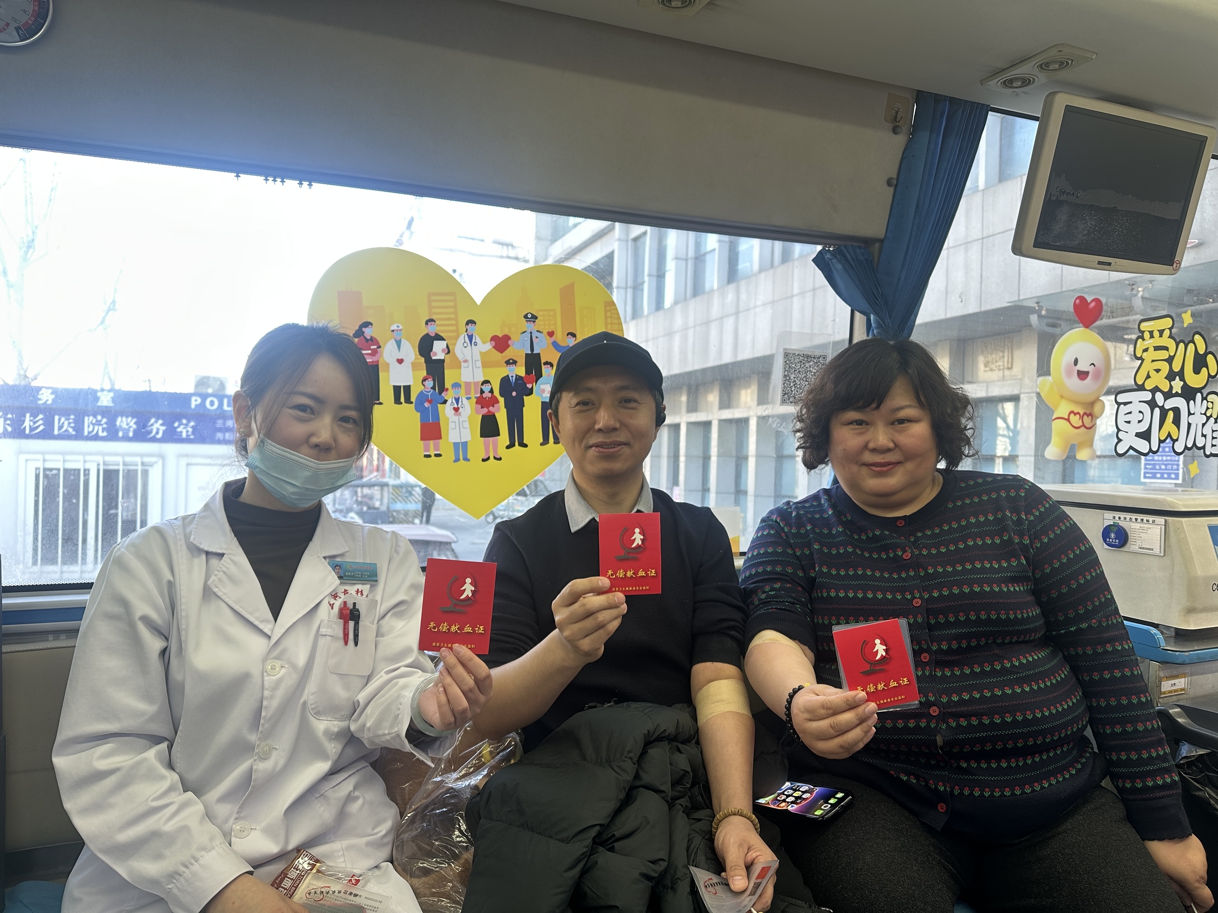 来自东杉医院的医务工作者武晓亮、袁秋月、李志艳献完血后说:“我们是守护健康的医者,更该带头做好表率,每次献血都是以另一种方式救死扶伤,这个举动我们会一直坚持,也希望能带动更多身边人,一起用热血为生命护航。”