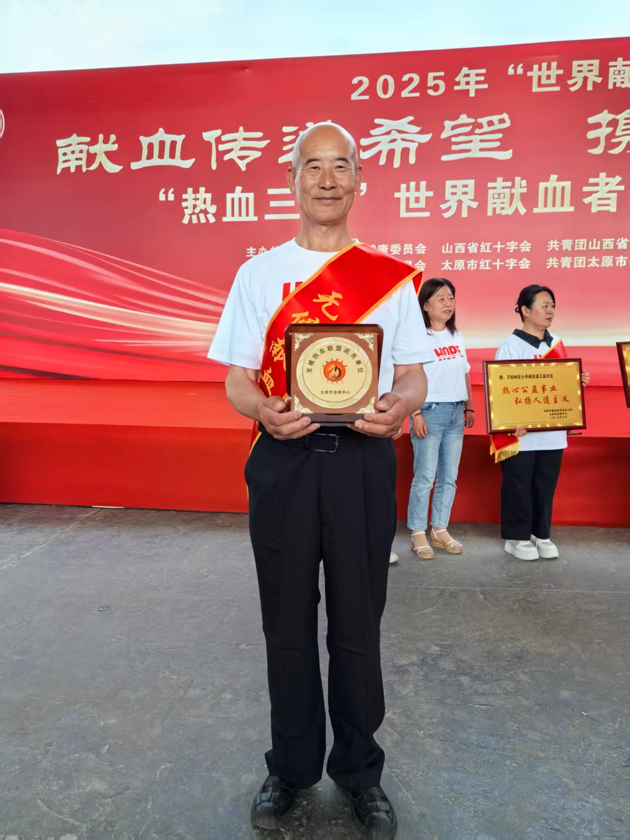 颁奖现场,赵军主任将证书和奖品递到王联珠手中时,特意叮嘱:“您是晋城的骄傲!这份荣誉是国家对您坚守的认可,更要带动更多人加入。”王联珠紧紧握住赵军的手:“我今年70多了,只要还能动,就会继续守在采血车旁!动员更多年轻人来接力!”