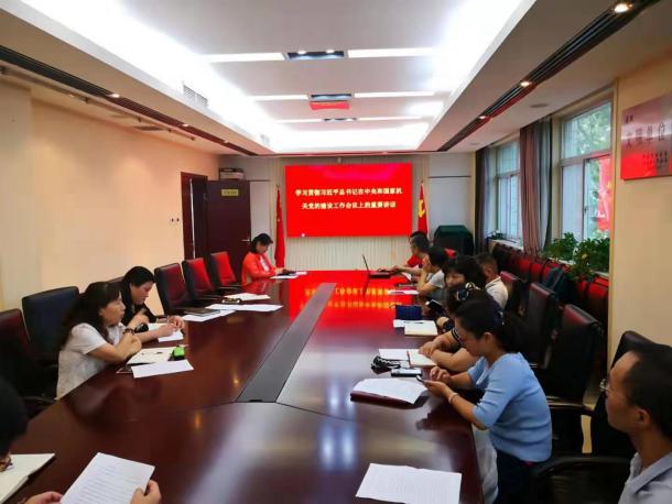 最后,支部书记纽泽雅同志带领全体党员一起认真学习习近平总书记在中央和国家机关党的建设工作会议上的重要讲话精神,向大家传达了《关于在“不忘初心、牢记使命”主题教育中认真学习党史、新中国史的通知》《关于广泛开展向张福清同志学习的通知》《关于追授李庆军同志“河南省优秀共产党员”称号,并开展向李庆军同志学习活动的决定》等文件,号召大家自觉向以习近平同志为核心的党中央看齐,善于向先进典型学习,争做新时代党员先锋。