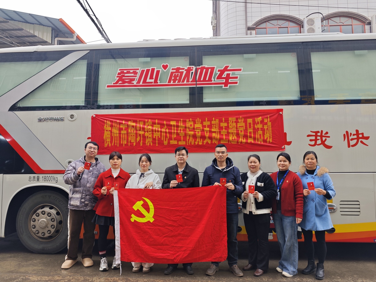 横州市陶圩镇中心卫生院党支部无偿献血主题党日活动合影